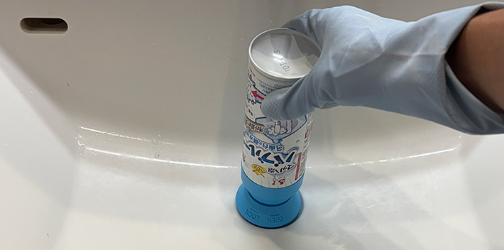 逆さまにして、排水口に押し当てると…。