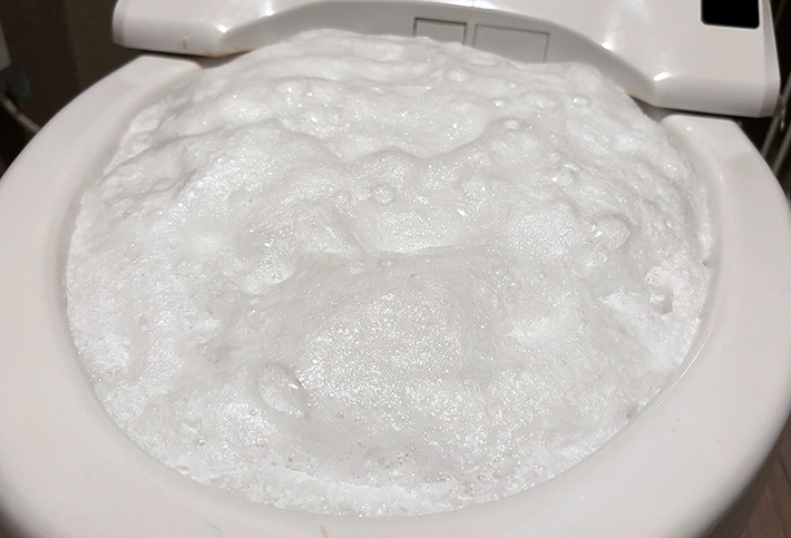便器の中で洗浄剤がモコモコと泡立ち始めているではありませんか。