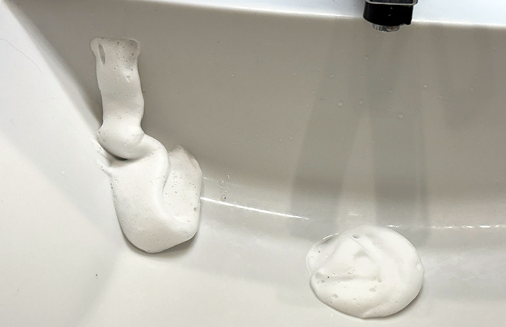 排水管の長さにもよりますが、泡を噴射させる時間は、約3~約7秒。