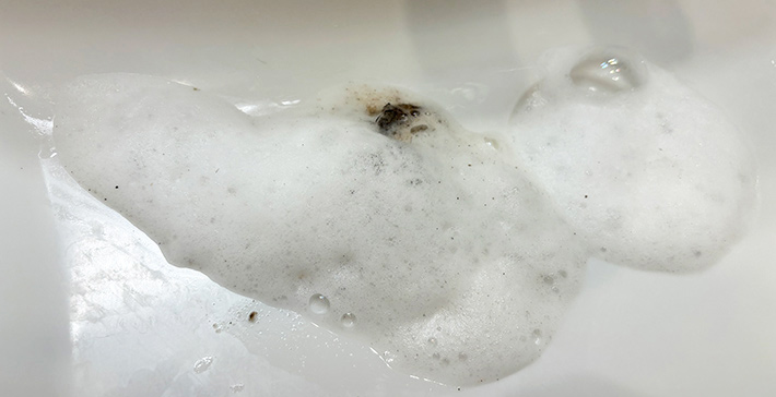 出てきた泡をよく見ると、黒い粒が混ざっていることが分かります。