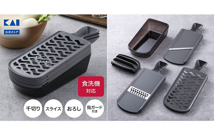 【10%OFF:スーパーSALE限定】 貝印 コンパクト調理器セット( 両刃スライサー 千切り おろし 指ガード ) | グレー 灰色 両刃 スライサー セット スライサーセット おろし器 指ガード ステンレス 野菜 安全 日本製 スライサー 千切りスライサー