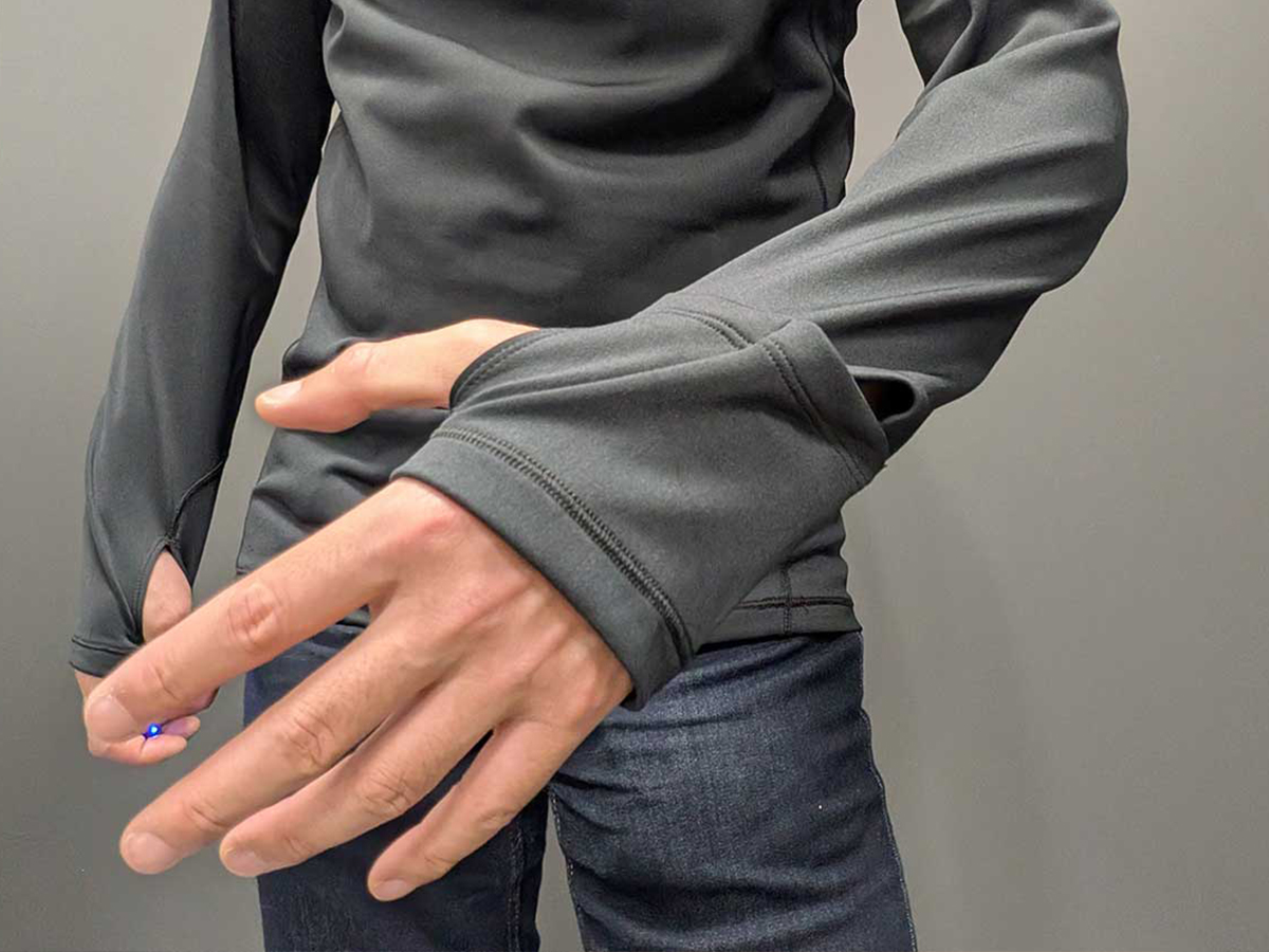 寒冷地でトレーニングをするアスリートを想定して開発された背景があり、重ね着をしなくてもあたたかくなるように設計。