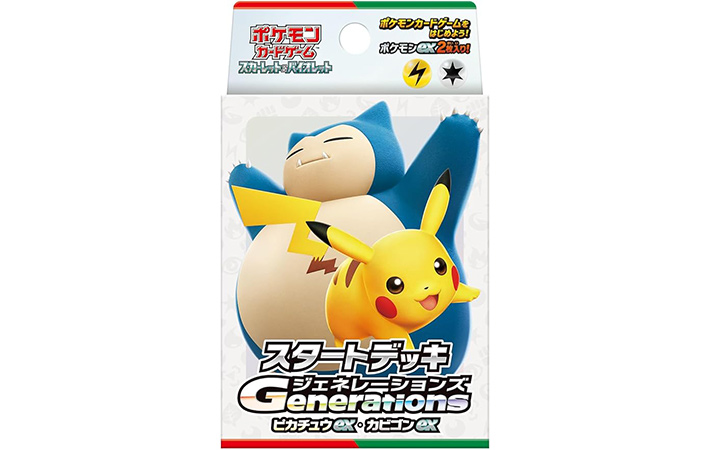 こちらは、大人気ポケモンの『ピカチュウ』と『カビゴン』が主力の『スタートデッキGenerations』です。
