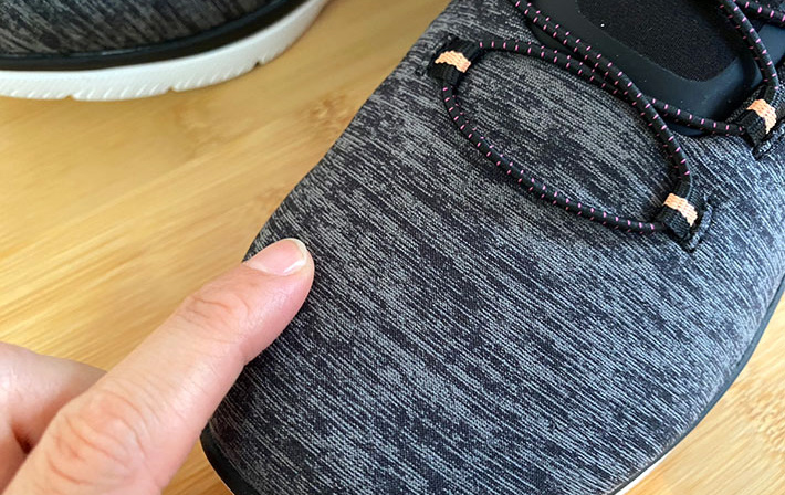 アッパーには、ソフトでストレッチ性のあるヘザージャージーニットが使われていて、指で触れるとさらっとした質感です。