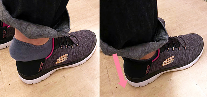 かかとを上から下にスッと滑らすだけで、ストレスが一切かかりません。
