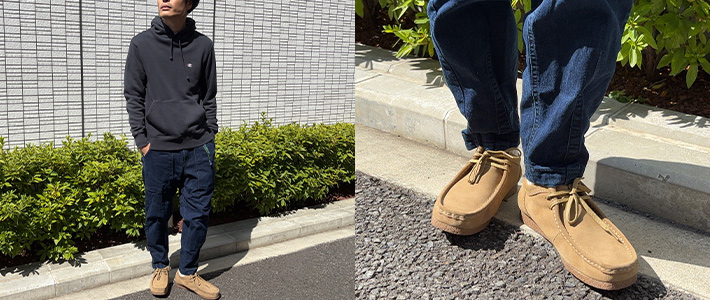 ・どんなボトムスにも合わせることができますよ。さすがクラークスの『ワラビー』です!