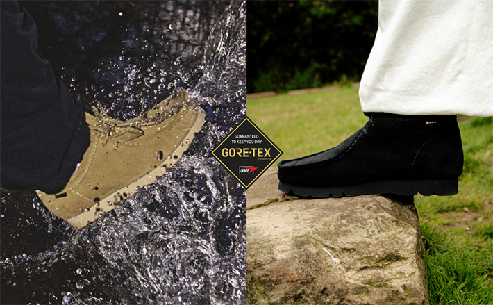 防水透湿性に優れたマテリアル『ゴアテックス』を使っているので、シューズ内の足を濡らす心配がいりませんよ。