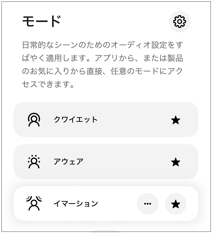 フルノイズキャンセリングの状態で、迫力のあるイマーシブオーディオを楽しめるモード。