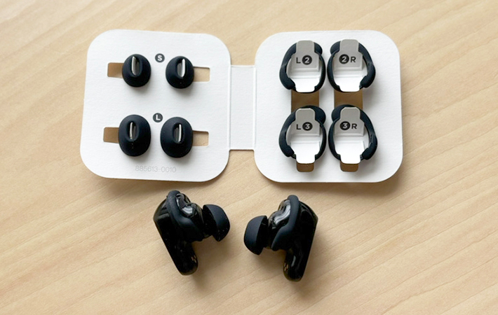 『Bose QuietComfort Ultra Earbuds』には、9通りの組み合わせを試せるイヤーチップとスタビリティバンドが付属。