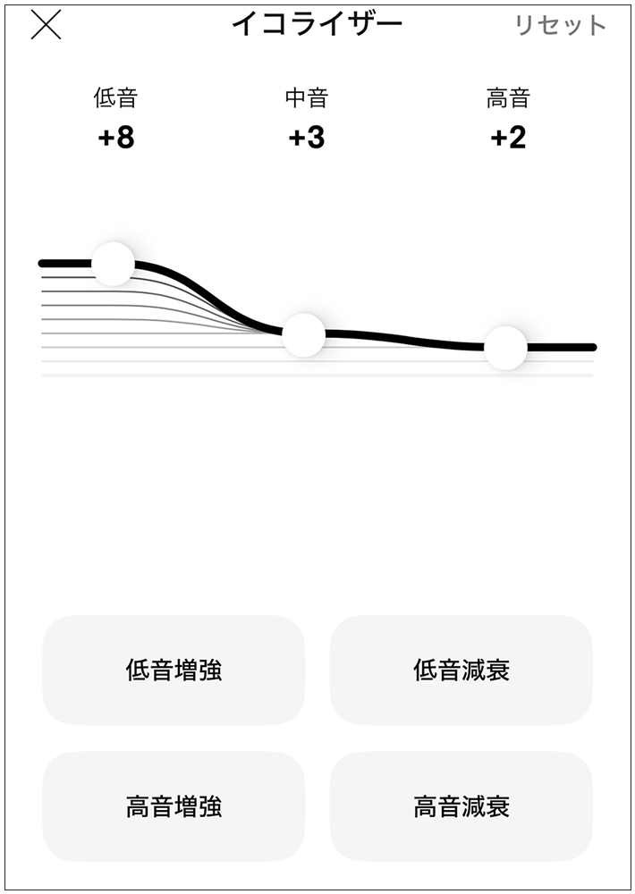 音質もカスタマイズでき、アプリからイコライザーを自由自在に設定できますよ。