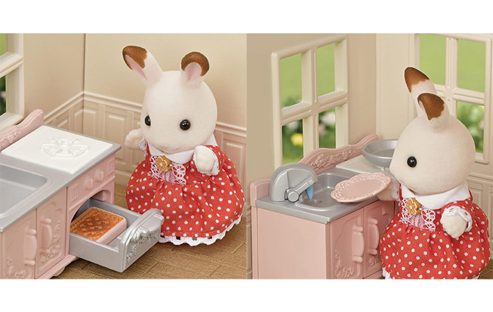 キッチンには、アップルパイが焼けたり、蛇口から水が出てきたりと癒しポイントが満載です!