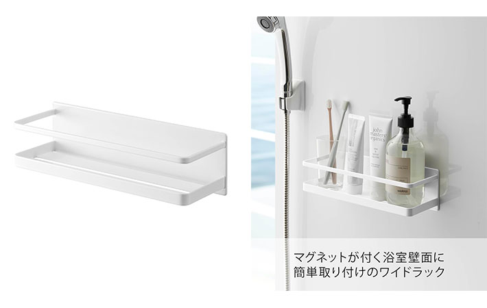 浴室の壁にマグネットでペタッとくっつけて設置できるワイドラック。