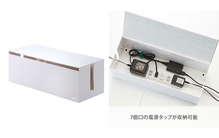 7個口までの電源タップを収納することができ、見た目がすっきりするだけでなく、ホコリが溜まりづらくなるので、電源火災防止にもつながります。