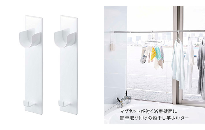 山崎実業(Yamazaki) マグネットバスルーム物干し竿ホルダー2個組 ホワイト 約W6XD3.5XH23cm ミスト 浴室乾燥 室内干し 4917