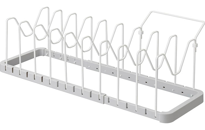 フライパンや鍋蓋を立てた状態で収納できるアイテムで、使いたい時にサッと手に取ることができます。