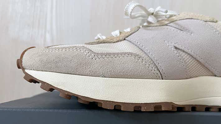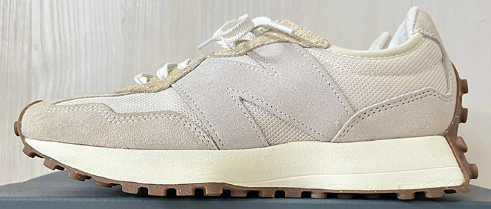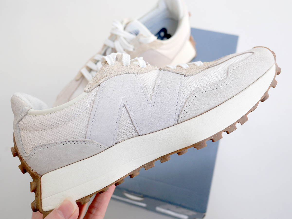 『ニューバランス327』に足を通した瞬間、フカフカの足当たりに気づきます。