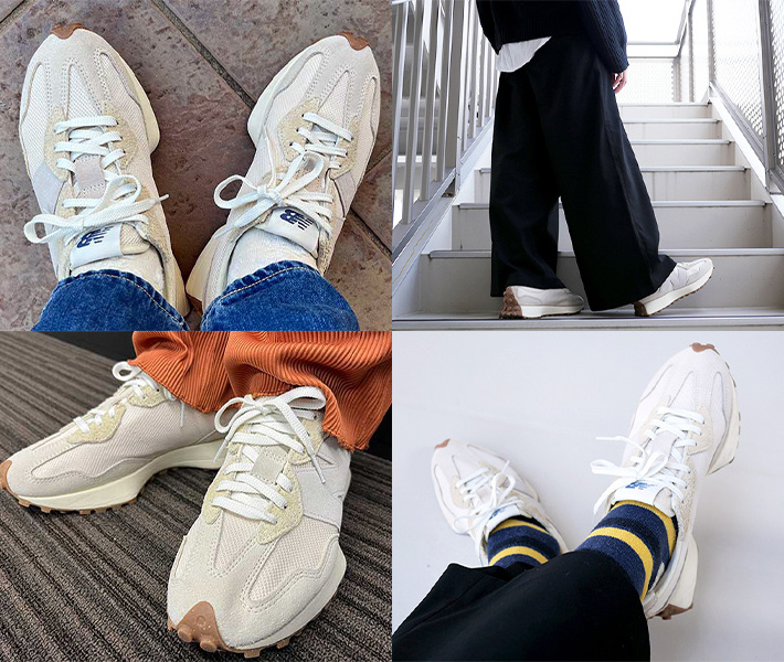 個性の強いシューズでも、ちょっとした工夫でコーデの主役になり得る『ニューバランス327』。