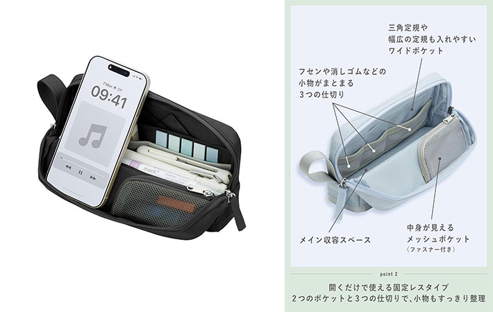 これまで使っていたペンケースとは違って、必要な物が一目で確認でき、サッと取り出すことができます。