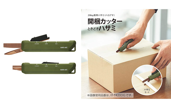 コクヨ(KOKUYO) はさみ カッター 2Way ハコアケ チタン刃 カーキ ハサ-T420DG