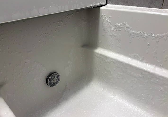 泡を噴射できたら、30秒待ってシャワーで洗い流せば、浴槽がピカピカになりますよ。