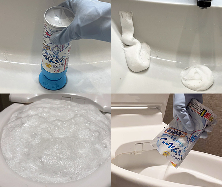 強力な泡の力で水アカ、黒ずみなどの汚れを落とし、しばらく経ったら水で流すだけというシリーズ。
