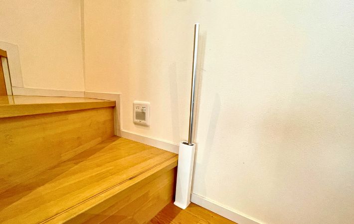 ホワイトのケースはどんな家にも馴染み、スリムなデザインで自立してくれるので、階段近くに置いておけば、汚れに気づいた時にサッと使えて便利ですよ。