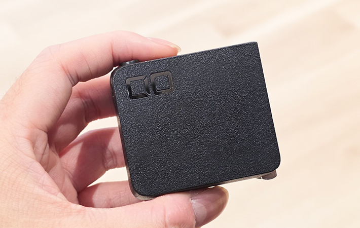 最後に端子をカチッと音が鳴るまで押し込み、シャッターを閉じれば、表面はほぼフラットになります。