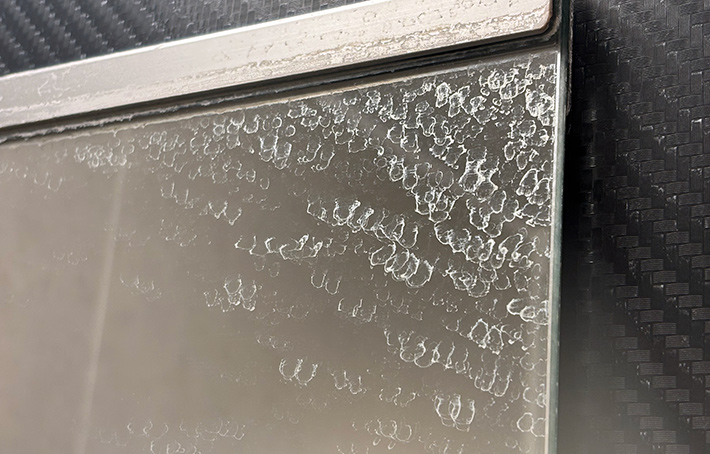 まだ、鏡の隅のほうに集中しているものの、ウロコがある所は、鏡としての機能を果たしていません。