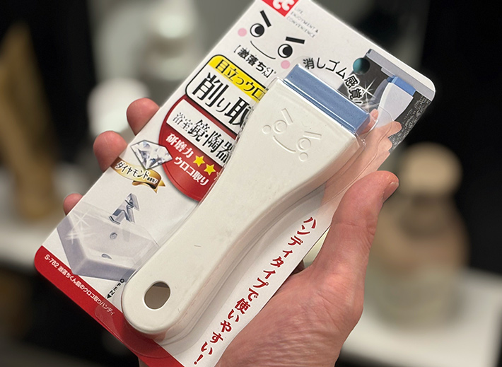 特殊なダイヤモンド研磨粒子の力で、頑固なウロコを削り取る、『鏡のウロコ取り ハンディ』。
