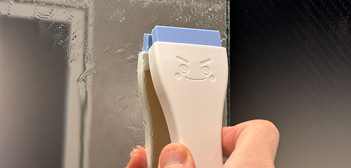鏡面を濡らしてから、均等の力で上下方向に繰り返しこすると、ウロコが落とせるといいます。