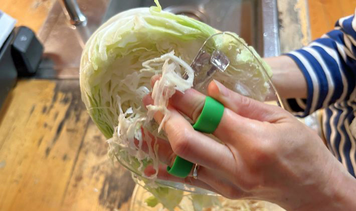 手に装着したままキャベツの千切りができる、ユニークなピーラーを紹介します!