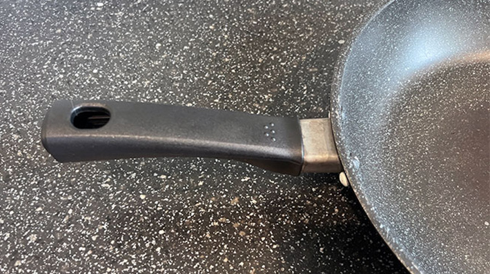 『貝印』のフライパンは、一般的なフライパンと比べて、ハンドルの長さが短いのが特徴なんです。