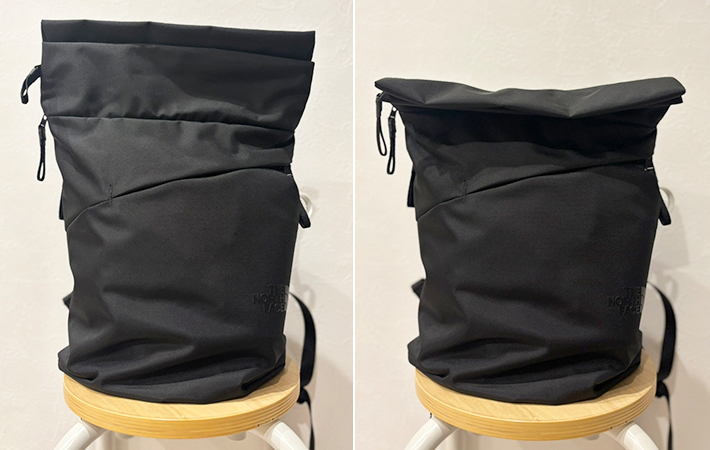 「荷物は少ないのに、ちょうどいい大きさのリュックがない…」なんて人にはもってこいの機能でしょう!