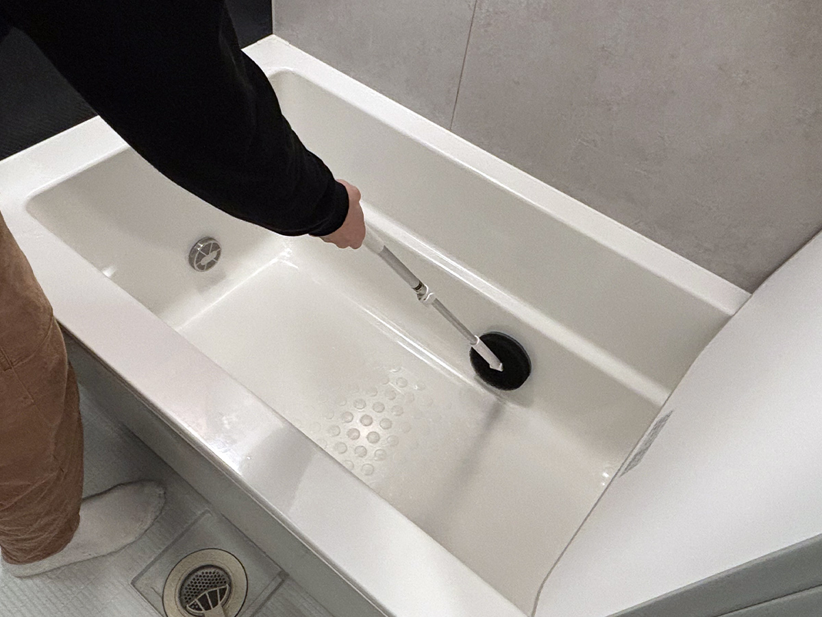 中腰の姿勢で身体の向きを変えながら、浴槽全体を磨き上げるのは、腰痛持ちにとって不安でしかありません。