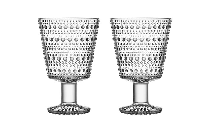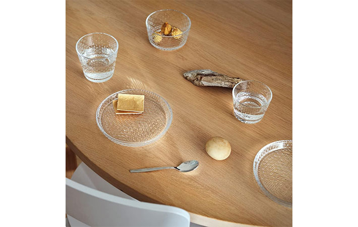 フィンランド語で『露のしずく』を意味する『カステヘルミ』は、連なる真珠のようにきらめく朝露にインスピレーションを得たといい、イッタラのガラス製品の中でも特に人気を集めています。
