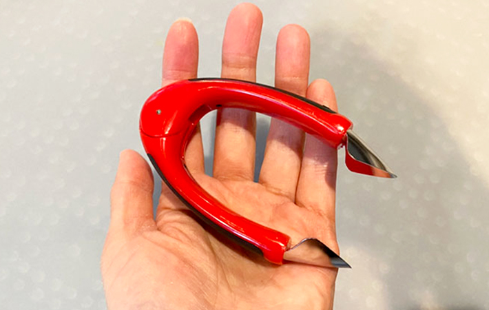 ・イチゴやキウイやリンゴなど、ヘタを簡単に取れて便利です。ナイフを使うとえぐりにくく、ついついヘタまわりの身も一緒に切り落としてしまってもったいないなと思うのですが、これはヘタの部分だけを取れるので生ゴミも減らせます。