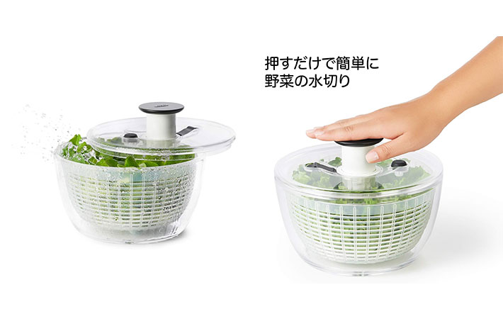 OXO オクソー サラダスピナー 野菜水切り器 小 丸型 2~3人分 一人暮らし 20.5×20.5×12cm 食器洗い乾燥機(低温設定)可