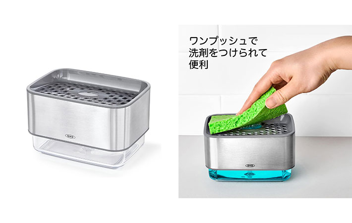 OXO オクソー スポンジホルダー ソープディスペンサー付 ワンプッシュで洗剤が出せる シルバー