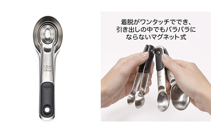 OXO オクソー計量スプーン メジャースプーン 4本セット マグネットで連結できる 一体型 大さじ~小さじ1/4 ステンレス製