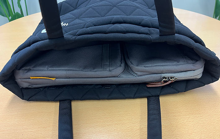 13インチのノートパソコンがすっぽりと収まるサイズ感なので、通勤用バッグのポテンシャルも十分です!