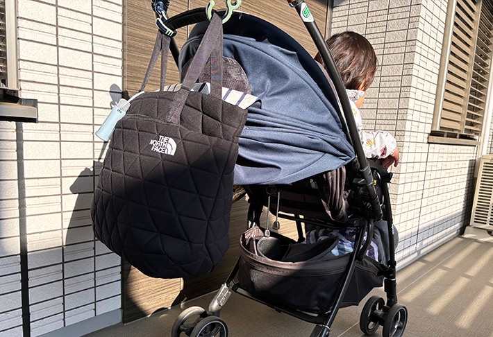 ・ベビーカーに吊るしておけば、ものの出し入れがかなりスムーズ!