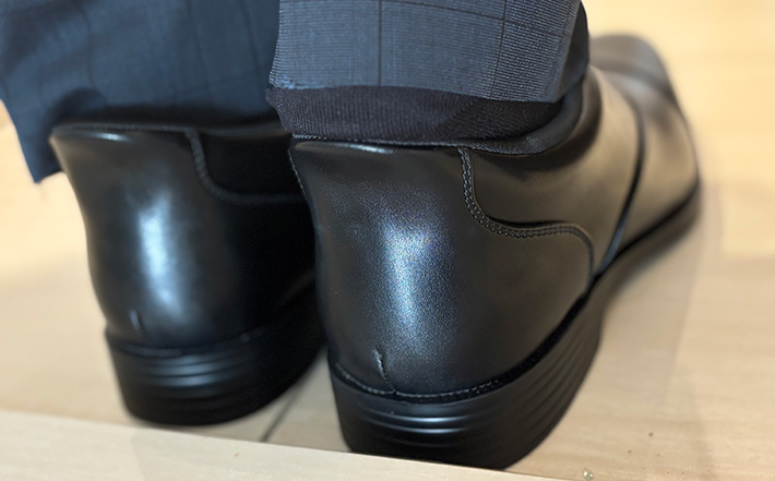 また、柔らかいクッション素材にもなっており、カカトがスルリと落ちる感覚を一度体験したら、ほかのビジネスシューズには戻れなくなりそうですよ!