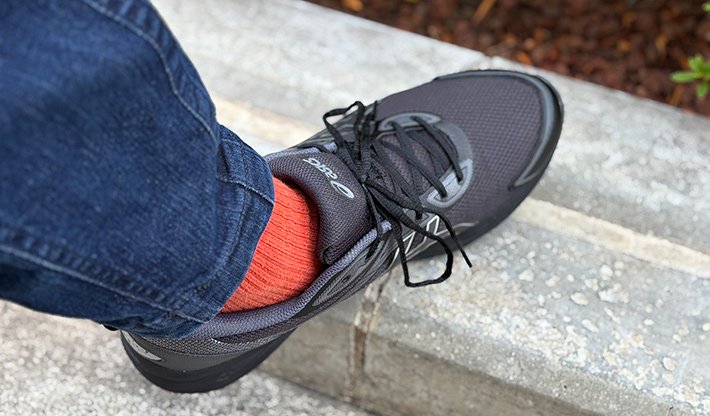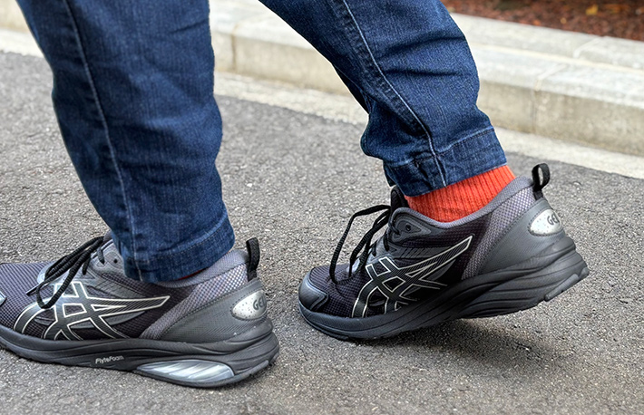 シューズの中で足がブレないので、サクサクと歩くことができるのは嬉しいですね。
