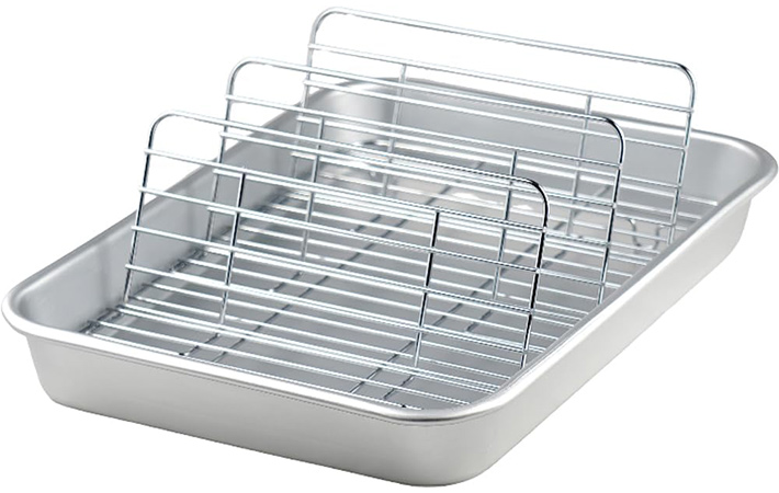 ちなみにアミのサイズは、縦21.5cm×横15.7cm×高さ2.5cmほど。家庭にちょうどいいサイズのバットがないと言う人は、ヨシカワが販売している、角バット 21枚取りがぴったり収めてくれのでおすすめですよ。