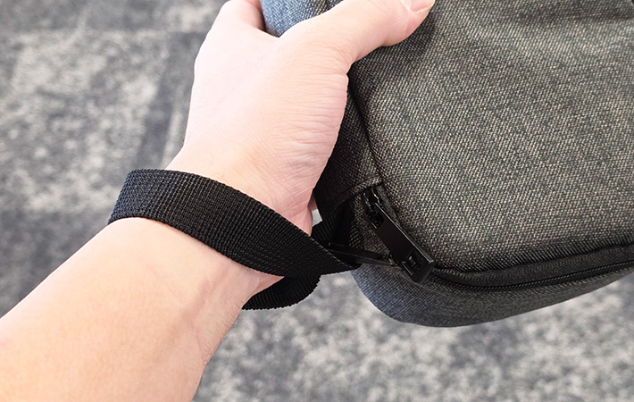リュックから出し入れする時に活躍するのはもちろん、手首を通せるほど大きいので、パソコンと一緒に周辺機器を持ってオフィスをウロウロする時にも重宝しています!