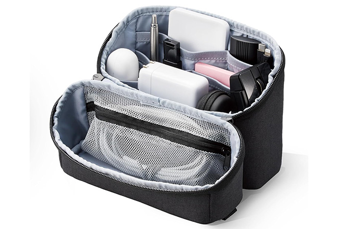 周辺機器が増えてリュックの中が散らかりがちな人にとって、ガジェットポーチは整理整頓に役立つ便利なアイテム。