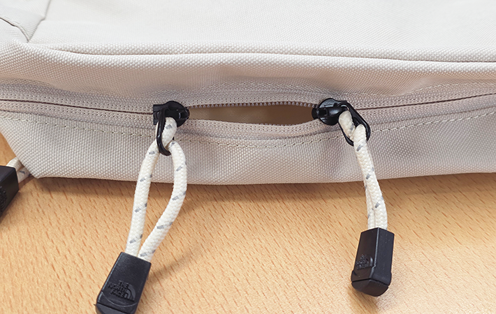 外側にもファスナーつきポケットが搭載されているため、頻繁に出し入れするパスケースやイヤホンなどは、ここに収納するといいでしょう。