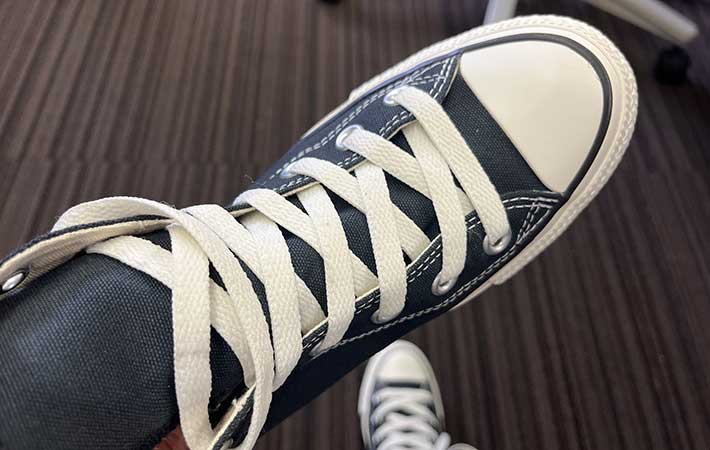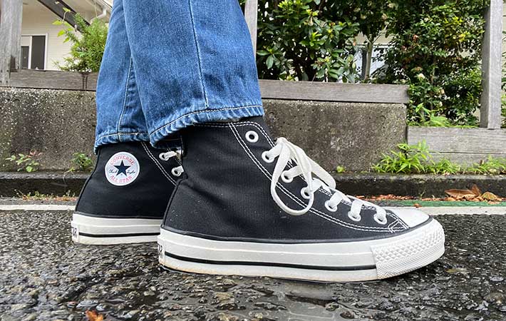 コンバースのオールスターシリーズは、「ソールが硬い」「重い」と言われることが多く、どちらかというと履き心地はそこまで評価されていない印象です。