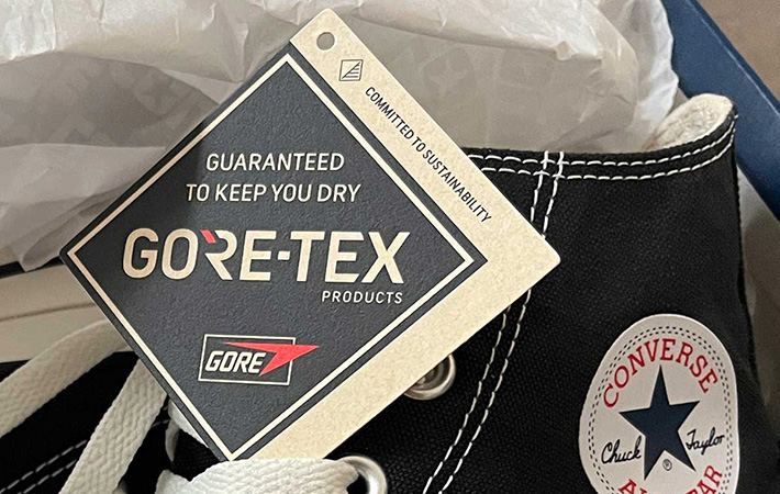オールスターのゴアテックスモデルでは、この素材を広い範囲に採用しています。