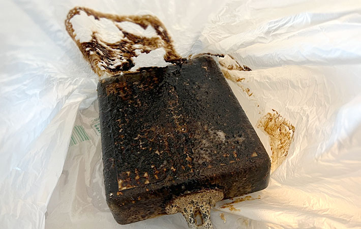 ビニール袋にも焦げ汚れがつくほどで、洗浄力の高さに驚かされます。